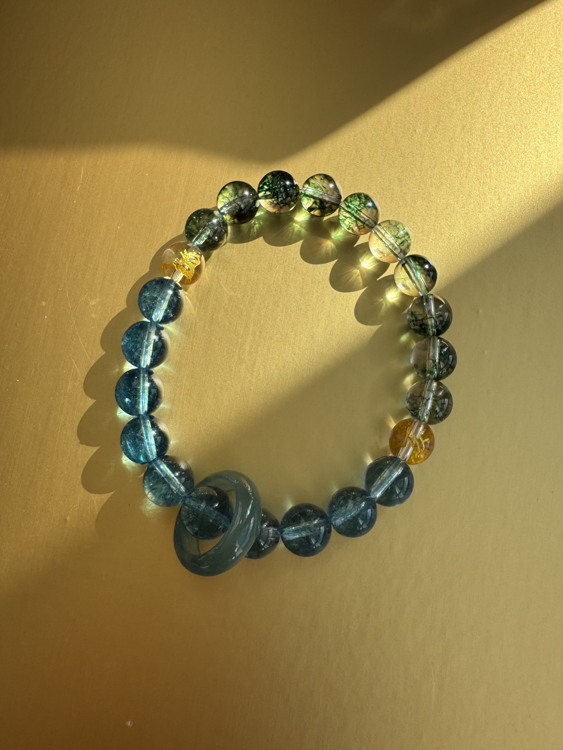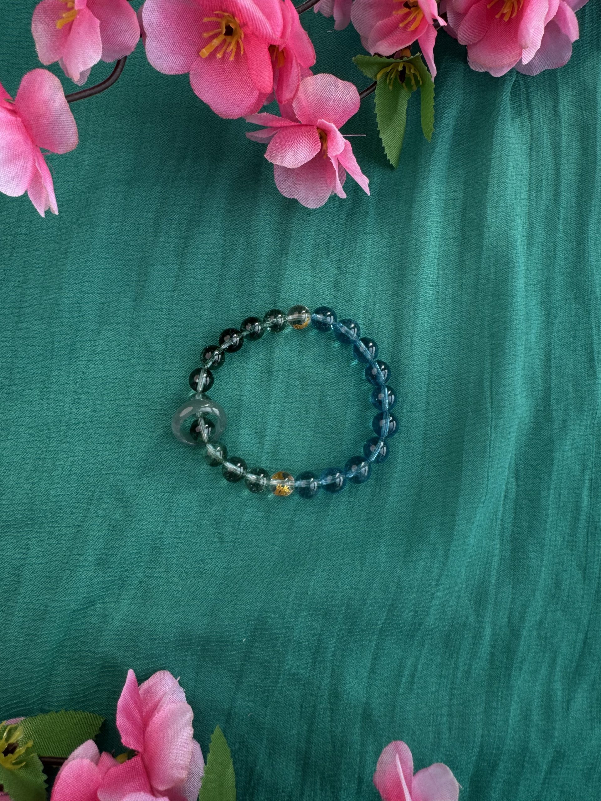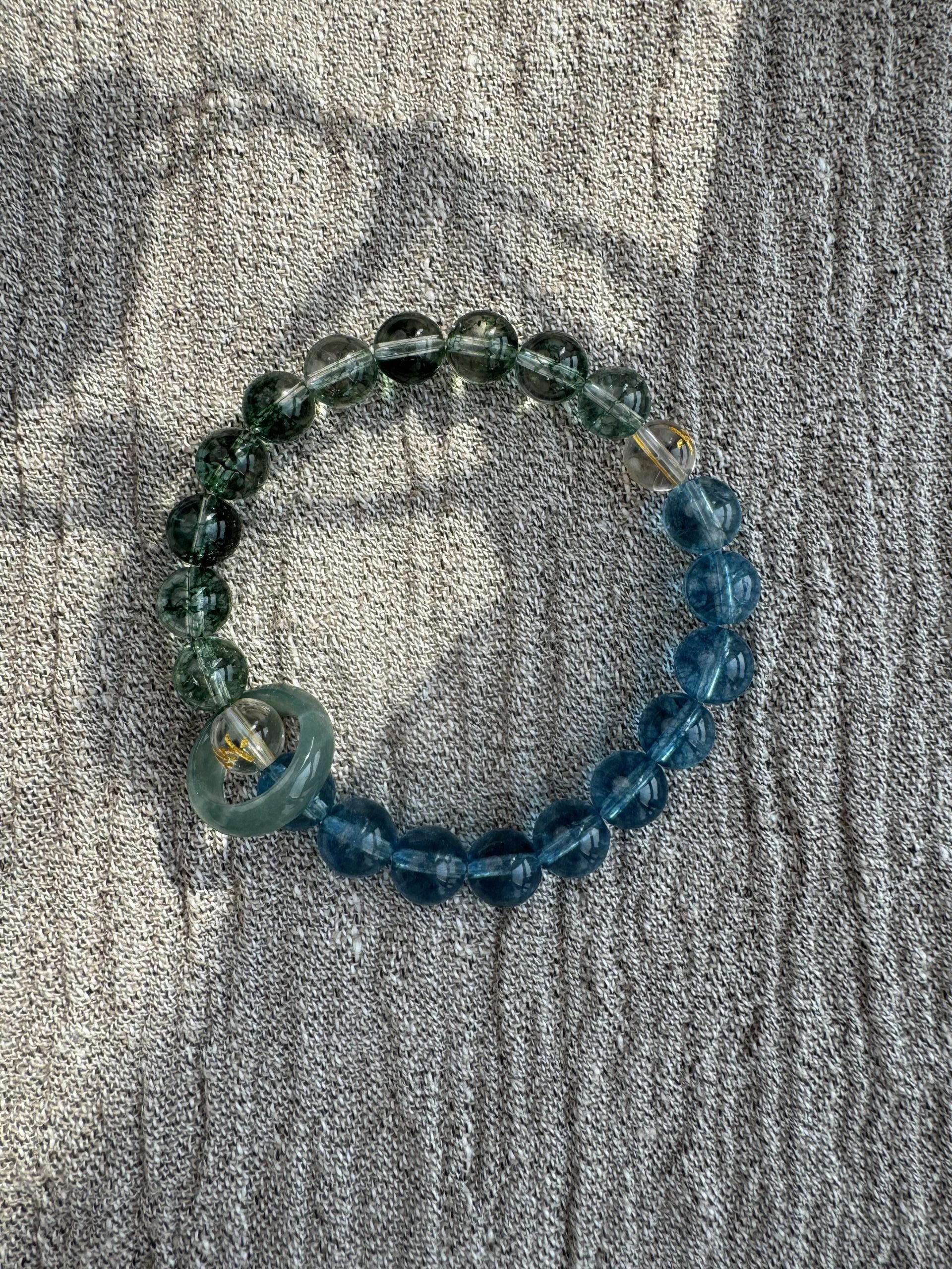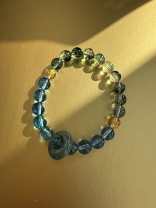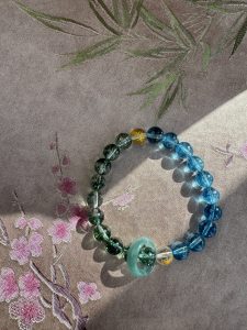 Blue Bojo Crystal” resembles the deep night sky, with speckled gold sands forming a galaxy of wisdom. (Five Elements: Water) Water governs intelligence and moistening flow, granting you clear thinking, smooth communication, and inner peace, resolving worries and nourishing spirituality.