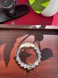 Using clear quartz as a mirror, it reflects the mind like a still lake—clear and undisturbed, sweeping away distractions to awaken inner clarity and wisdom.